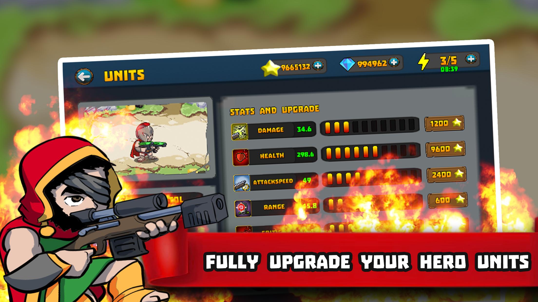 ✔ Train and upgrade your heroes for a super fighting ability